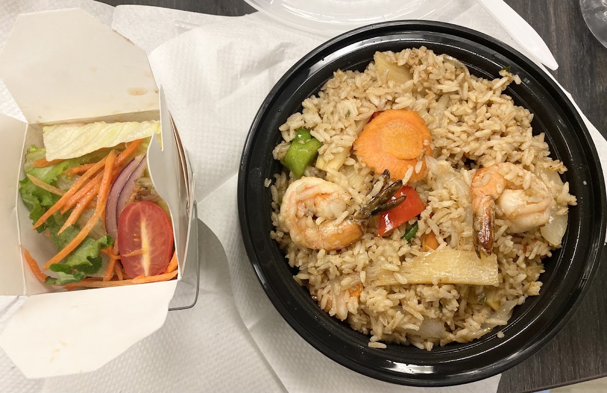 Food is always quick and delicious! I usually get the lunch special: spicy basil fried rice with chicken and it comes with a small app. I usually get the Tom Jurd Soup. So tasty!