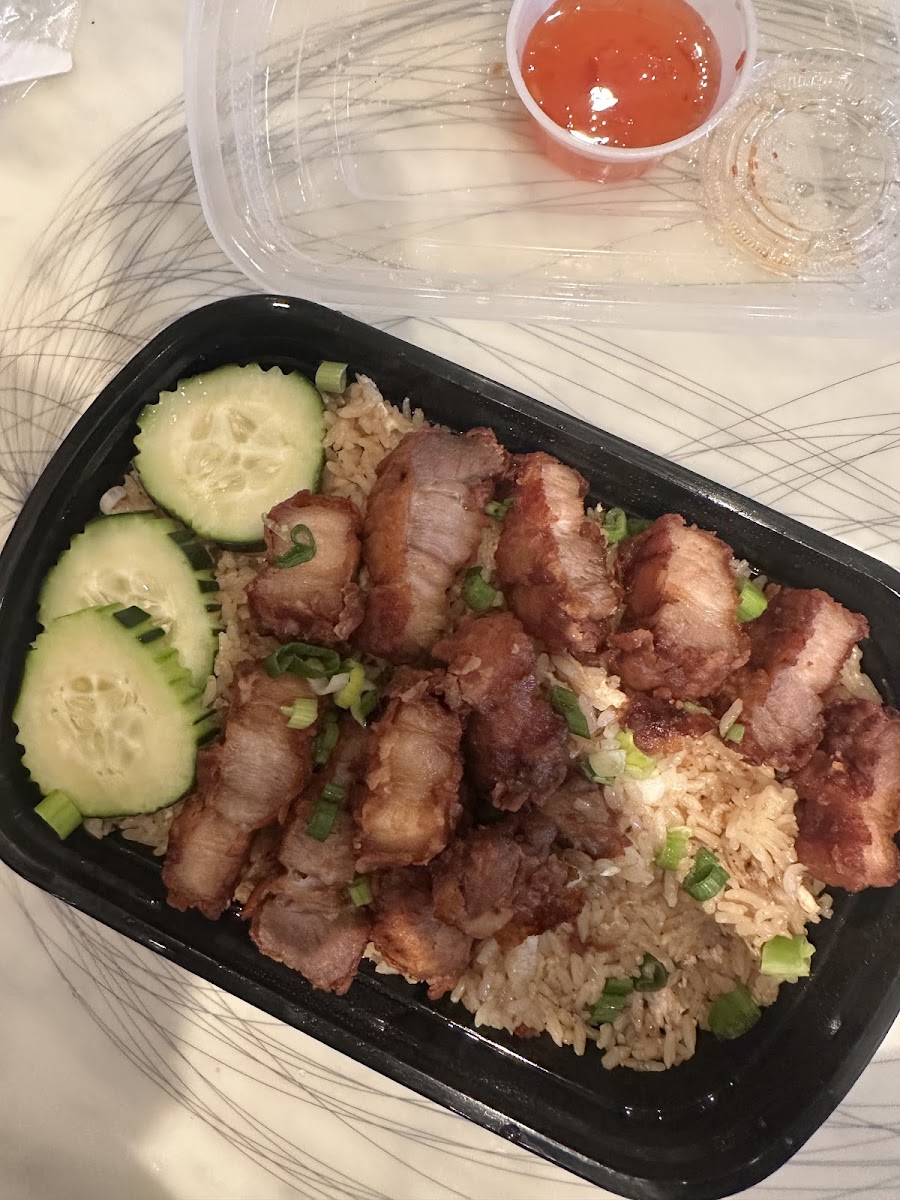 Small spot a bit dark and smoke . Only 1 Cashier who handles many customers. She did her best . My choice goes for Fried marinated pork over rice. Test of pork and dipping is so tasty Good spot